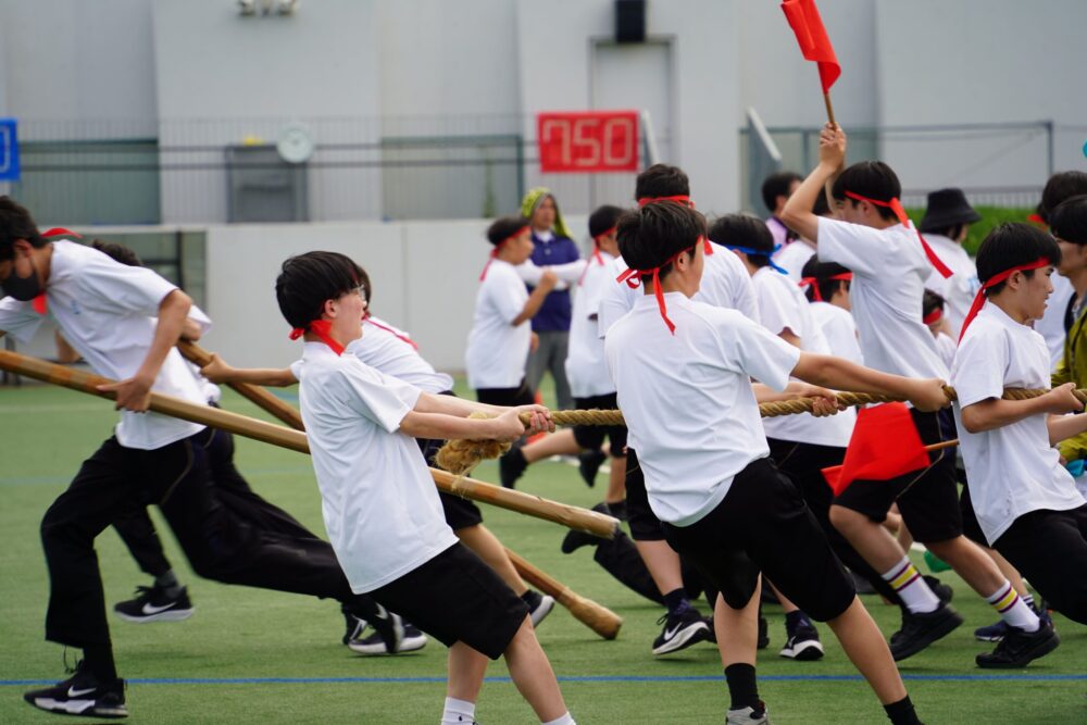今年度も、Roll it!(大玉転がし)、目学宅配便リレー、台風の目、竹取物語、ボール送り、騎馬戦や綱引き等々数多くの競技種目が用意されました。生徒たちは、準備段階から真剣に取り組み、本番ではすべての競技に一生懸命力を注ぎ、大声で応援し、情熱的で躍動感あふれる姿を見せてくれました。