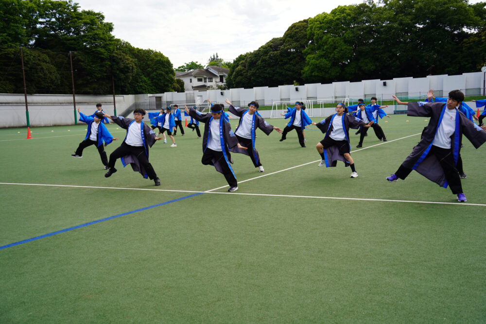 中でも体育祭名物「目学ソーラン」は一貫コースの伝統となっております。全生徒がそれぞれ赤色と青色のハッピに身を包みソーラン節を全力で踊ります。勝敗は来場された保護者の投票で決まります。